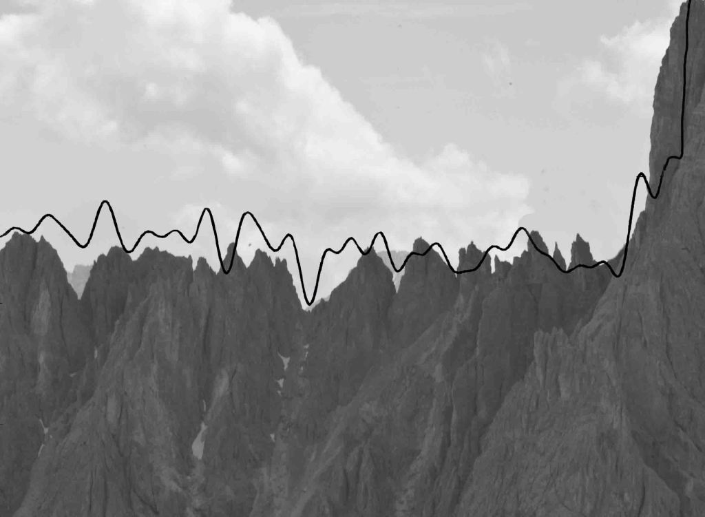 Aerial photographs were taken from a helicopter in front of the range at an altitude of 3000 m height in summer 2013. The range itself will be an object of climate observation and will reflect the scientific method in order to validate what it claims and predicts, by displaying the curve in its silhouette.