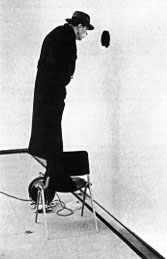 Photo: Joseph Beuys looking at his work “Loch” in the group exposition “Schwarz” at Kunsthalle Düsseldorf, Germany, in 1981
