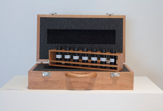 Photo: Suitcase for “Social Sculpture: The Scent of Joseph Beuys” containing the 7 scents of “I Like America and America Likes Me” in 7 vials.